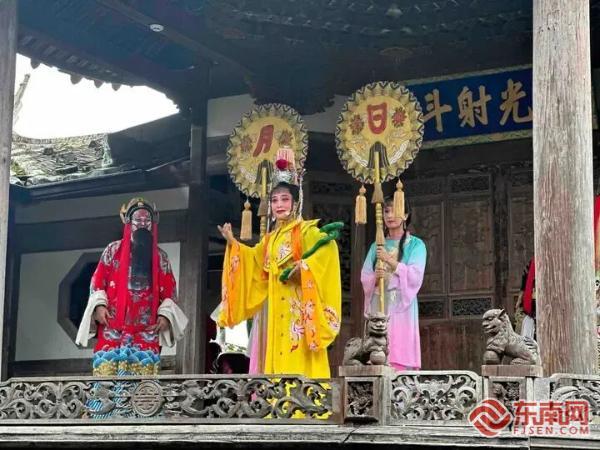 夜幕降臨,洋中鎮柳州祠的古戲臺上,閩劇《媽祖傳奇》唱腔韻味悠長,臺下座無虛席。67歲的戲迷陳老伯說:"能在祖先留下的戲臺看戲,感覺特別有意義。"