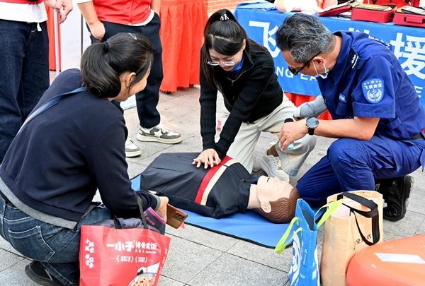 舞臺下,“四個一”亮點內容之一的“一日志愿者”互動體驗區,成為最具人氣的區域。這里設置了禁毒志愿者體驗點、環保體驗點、助殘體驗點、救援裝備體驗點等多個微型志愿服務體驗點,吸引眾多市民駐足參與。在近鄰志愿服務市集,鎮(街道)、社區、機關事業單位、志愿服務組織和團體等17支志愿服務隊伍,為廣大居民提供義剪、義診、普法宣傳、移風易俗宣傳等多樣化便民服務。