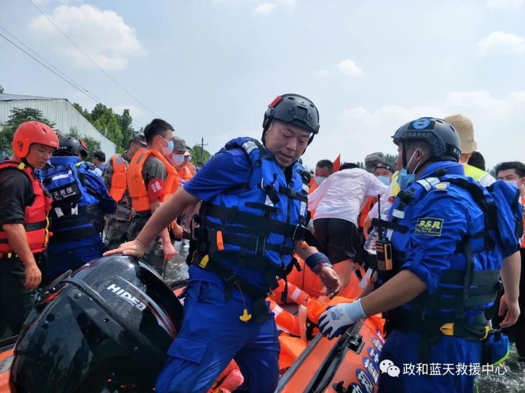 藍天救援隊員轉移受災群眾現場(政和藍天救援中心 供圖)