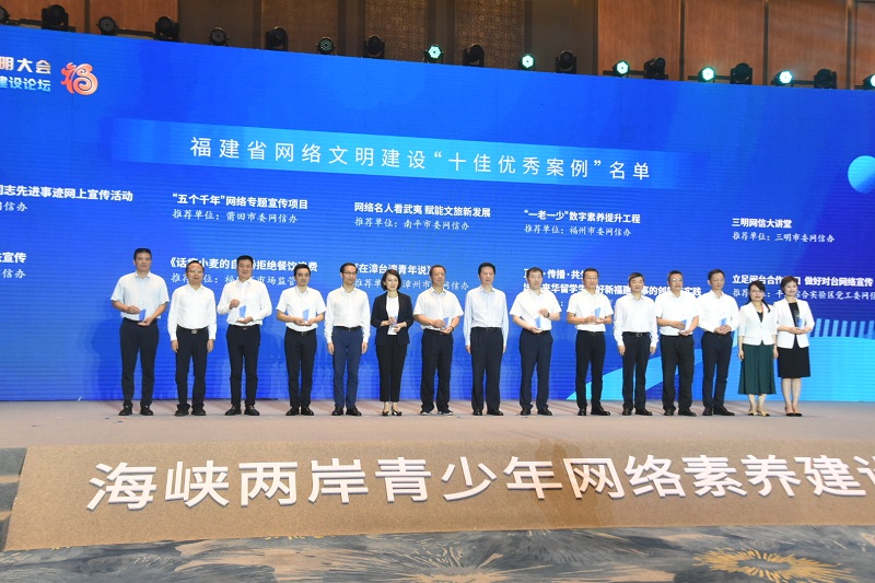 福建省網絡文明建設“十佳優秀案例”分別是,寧德市委網信辦推薦的全國道德模范陳祥榕同志先進事跡網上宣傳活動、莆田市委網信辦推薦的“五個千年”網絡專題宣傳項目、南平市委網信辦推薦的“網絡名人看武夷 賦能文旅新發展”、福州市委網信辦推薦的“一老一少”數字素養提升工程、三明市委網信辦推薦的三明網信大講堂、泉州市委網信辦推薦的《五里橋茶館》系列普法宣傳、福建省市場監管局推薦的《話癆小麥的自白》拒絕餐桌浪費、漳州市委網信辦推薦的《在漳臺灣青年說》、福建省教育廳推薦的“互鑒·傳播·共生:培養來華留學生講好新福建故事的創新與實踐”、平潭綜合實驗區黨工委網信辦推薦的“立足閩臺合作窗口 做好對臺網絡宣傳”。
