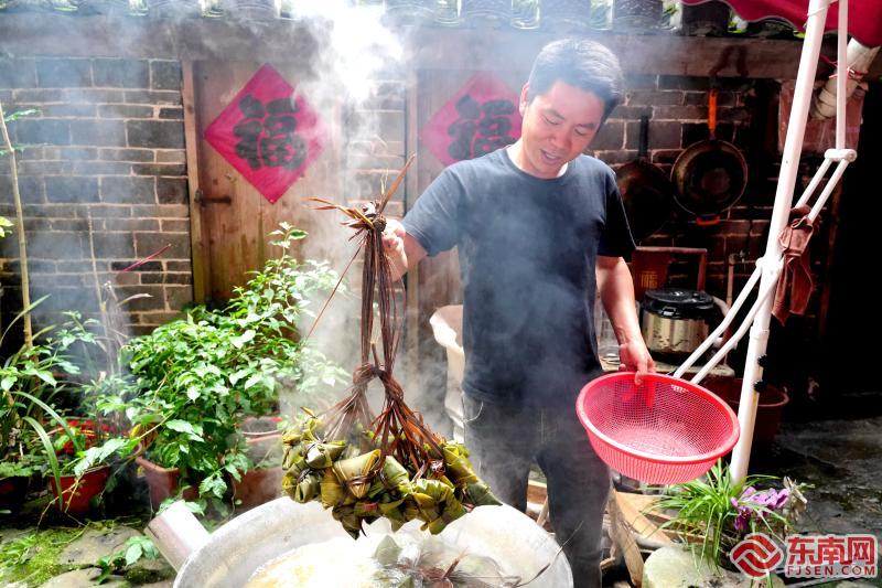 在土樓里,包粽子的傳統更添溫情,三代人圍坐在土樓廳堂,長輩耐心地教晚輩折粽葉、纏棉線。村民們告訴記者,用山泉水浸泡糯米,采摘后山新鮮的粽葉,這樣包出的粽子才有濃濃的“家鄉味”。蒸籠掀開,白霧升騰,粽香與歡笑聲彌漫整個院落。