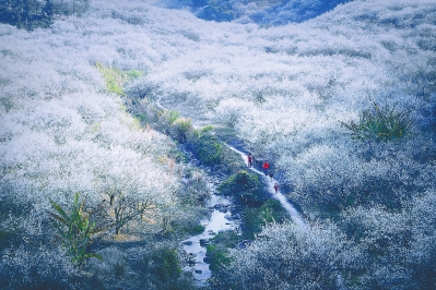 2015年1月18日,花開的季節,福州永泰漫山遍野的青梅猶如皚皚白雪。 何小軍 攝