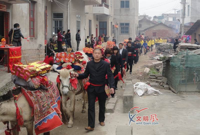 被譽(yù)為涵江歷史文化名村的的洋尾,每年從正月初九開始,六個(gè)自然村的各個(gè)角落就紛紛鑼鼓喧天、慶典不斷,輪流著開展小型的“分元宵”活動(dòng)。而作為“總元宵”出場(chǎng)的“跑二六”是重頭戲,由洋尾村的各家各戶雇上馬匹,讓自家十來歲的孩童畫上粉面、穿上古裝,扮飾成傳統(tǒng)的民間傳說和神話故事中的歷史人物,頸掛銀鎖,騎馬游鄉(xiāng)。每年這一天,在齊鳴的鞭炮聲中,巡游馬隊(duì)依據(jù)傳統(tǒng)的線路,熱熱鬧鬧地走過桃花艷麗的白塘湖畔,穿越古老的祖先祭祠與牌坊,沿途村民紛紛焚香化草、祈福禱告。