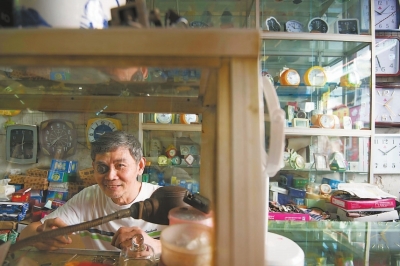 蔡開容,67歲,平日里,老蔡白天在店里維修鐘表,賣賣貨,晚上回到新城區的家。“100多年的老屋,每天來這里也是一種陪伴。”