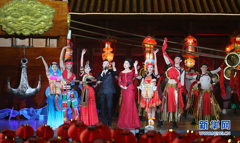 2月7日晚,央視春晚泉州分會(huì)場(chǎng)的主持人和演員們向全國(guó)人民拜年。